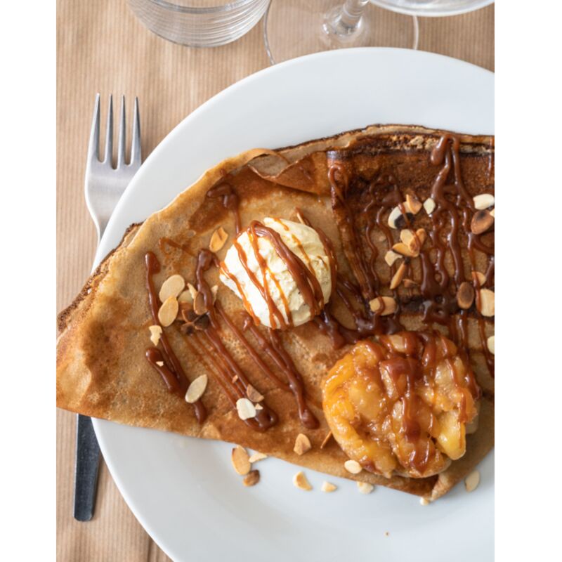 Les farines sont sélectionnées avec soin. IGP Bretagne pour le sarrasin et BIO pour le froment. Des galettes et crêpes "du moment" sont élaborées régulièrement pour diversifier les plaisirs...